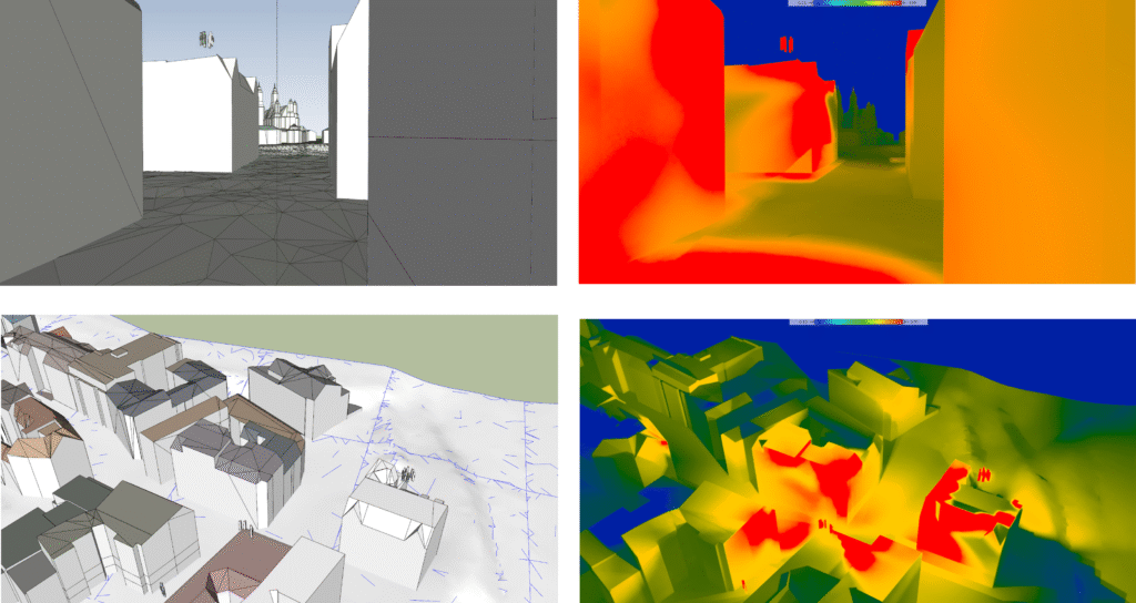 Nasza przykładowa symulacja / analiza propagacji promieniowania wokół anten telefonii komórkowej narzędzie wewnętrzne dla celów Audytu Zdalnego (nie wysyłamy tych obrazów w Audycie). Na podstawie takich narzędzi wiemy, gdzie panują najwyższe poziomy promieniowania. Audyt Zdalny wykonujemy na podstawie zebranych informacji z formularza oraz dostępnych danych mapowych/geodezyjnych z użyciem narzędzi CAD. Wynikiem Audytu jest wskazanie do dalszych pomiarów lub wskazanie względnego poziomu bezpieczeństwa (każdy lokal posiada bowiem indywidualną charakterystykę – geometrię, materiały budowlane i przenikalność fal elektro-magnetycznych.